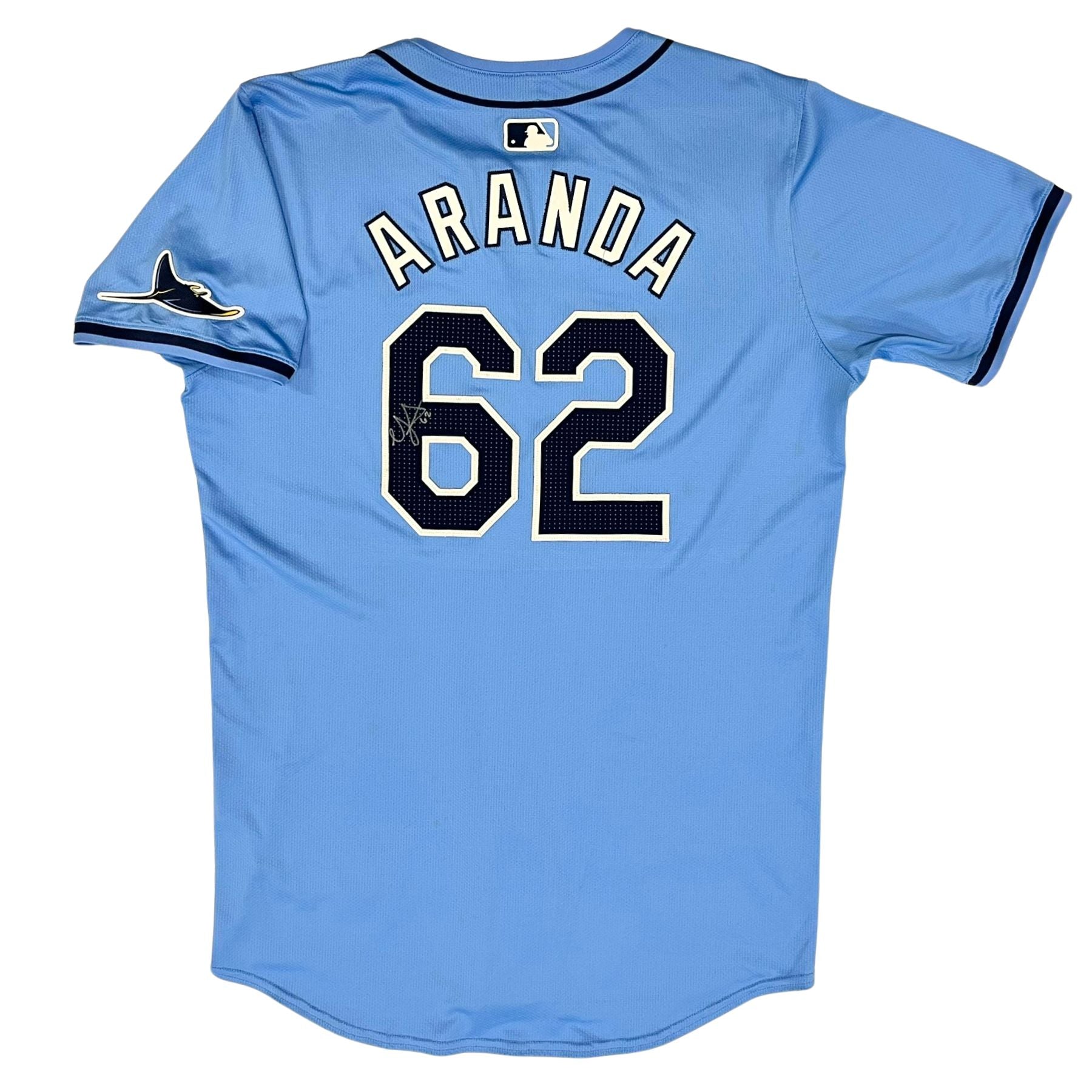 Tampa Bay Rays Player Jonathan Aranda Team Issued Authentic Autographed Jersey.