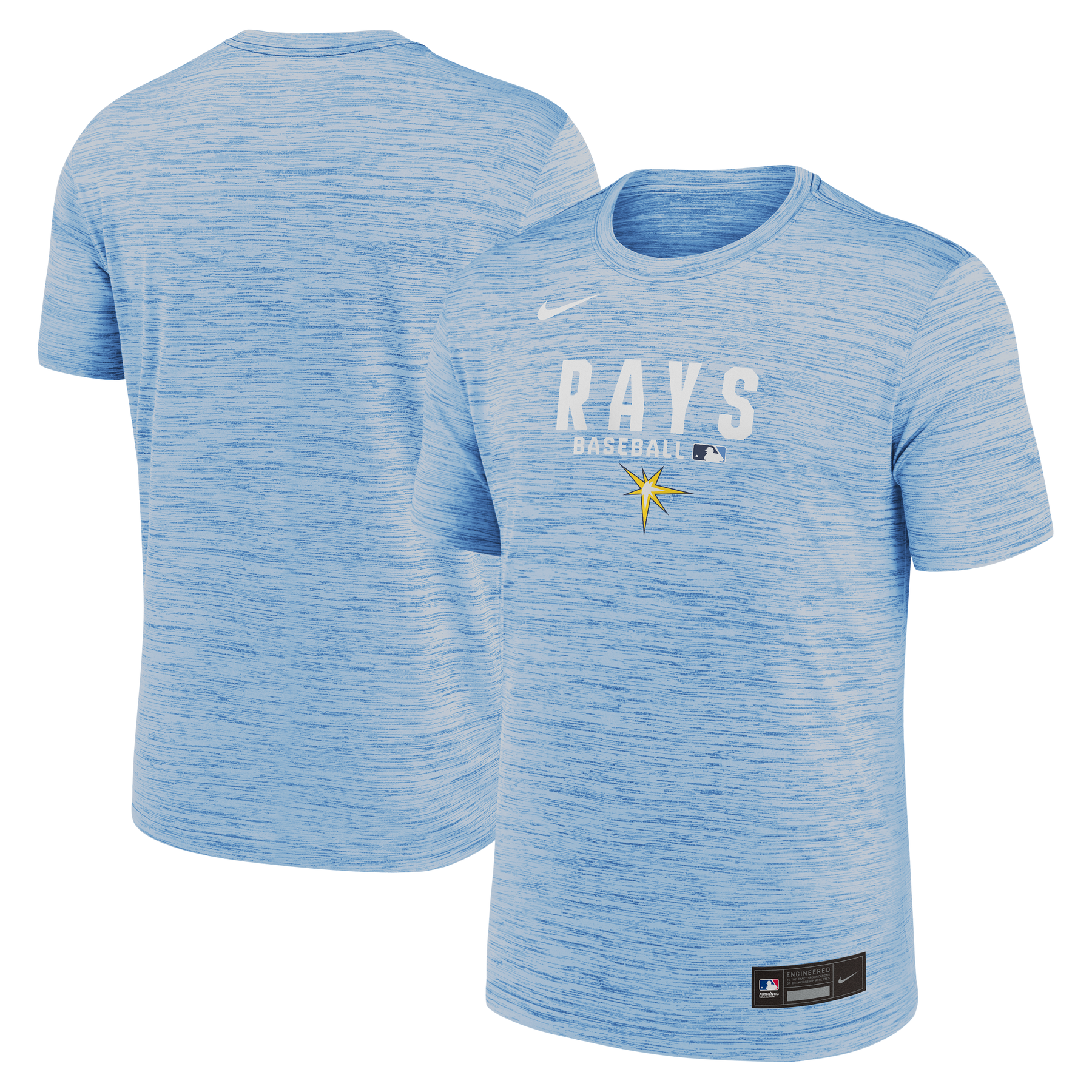 Rays Men's Nike 2026 Valor Blue Burst Authentic Collection Velocity Dri Fit T-Shirt Engineered for performance and team pride, this Nike Velocity Dri-FIT tee combines moisture-wicking technology with the striking Valor Blue Burst colorway exclusive to the Rays' 2026 Authentic Collection. The advanced fabric actively pulls sweat away from your skin, keeping you dry and comfortable whether you're cheering from the stands or wearing your allegiance throughout the day. Crafted with Nike's premium construction standards, this shirt delivers the quality and durability expected from official team apparel. Perfect for dedicated fans who demand both style and functionality.