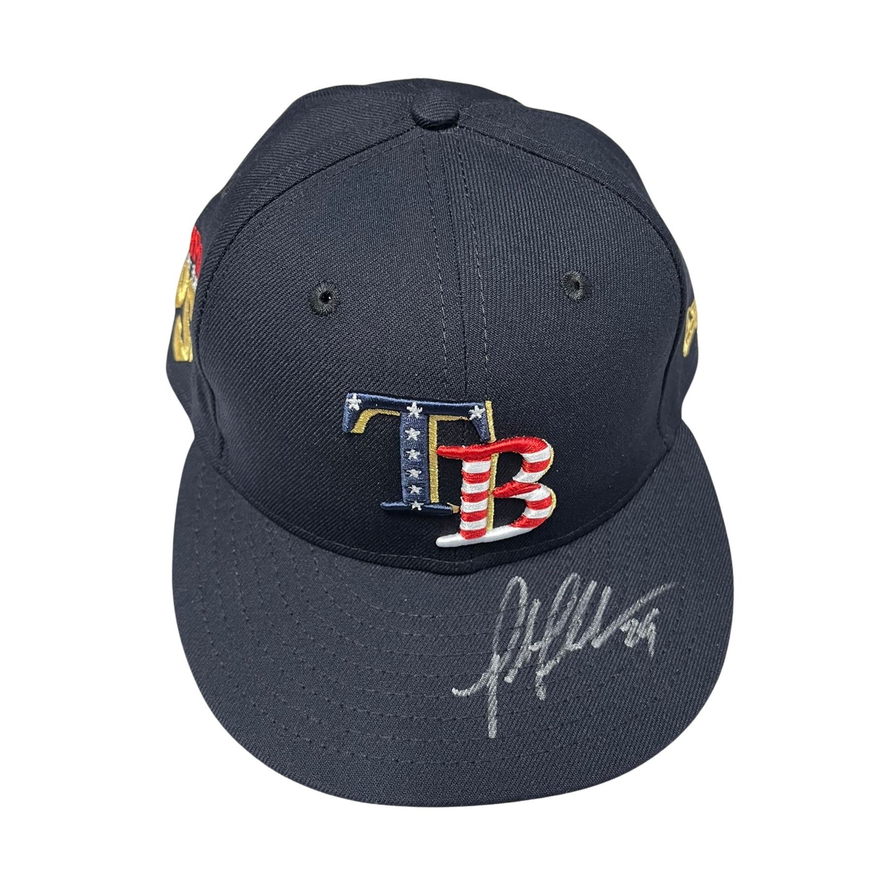Game Used Pete Fairbanks Fourth of July autographed hat (size 7 1/4) authenticated by Major League Baseball. Game: Philadelphia Phillies at Tampa Bay Rays. July 4, 2023.