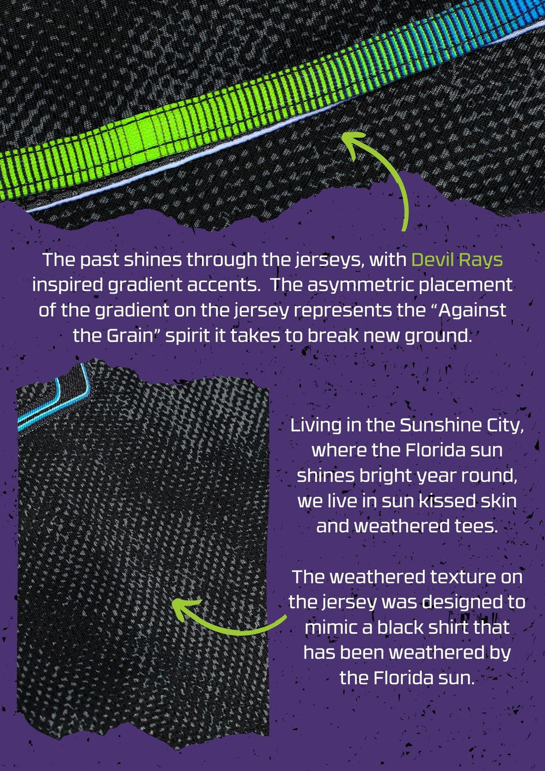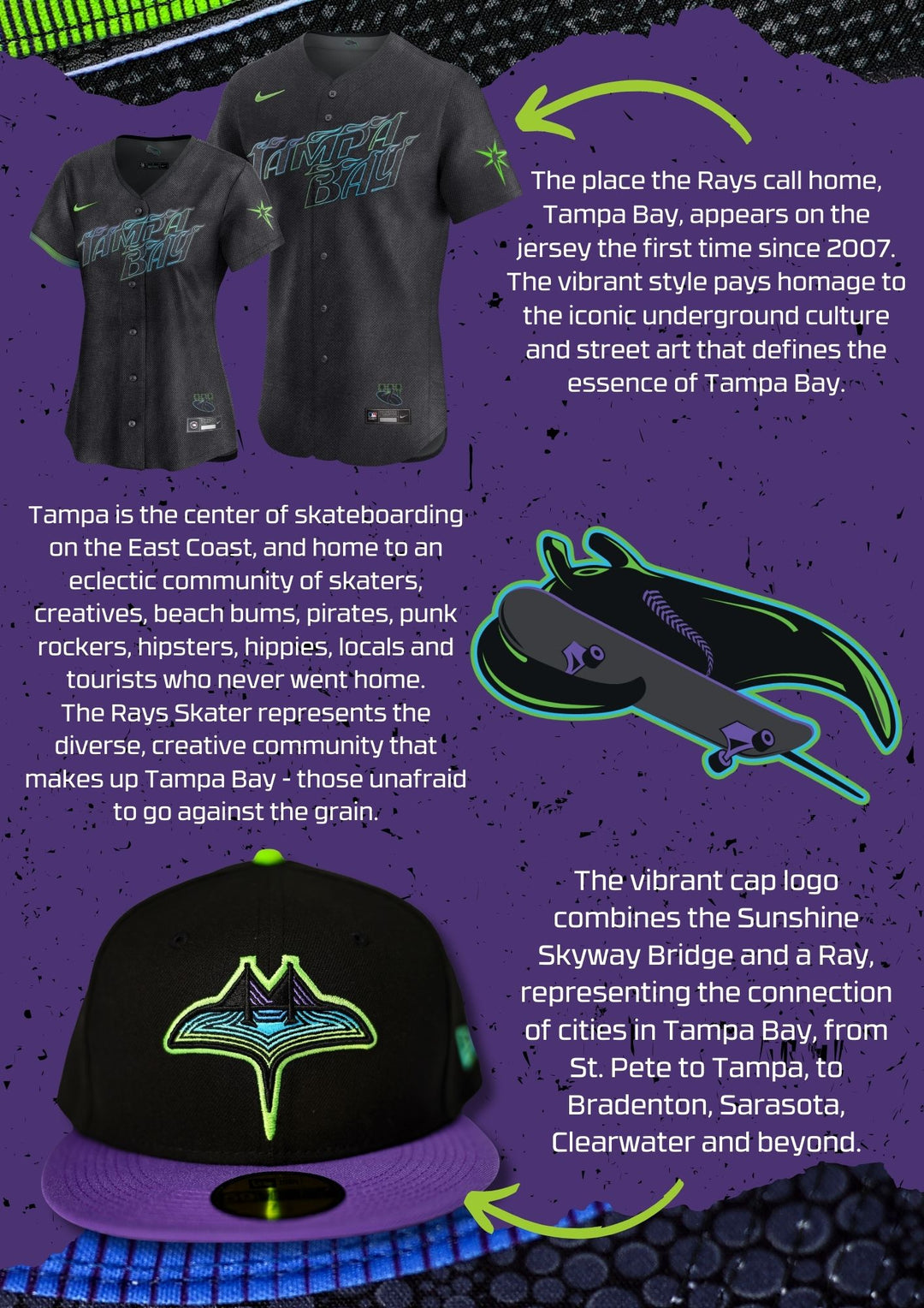 "The Rays City Connect Grit x Glow uniform pays tribute to the independent, underground spirit of Tampa Bay, our defiantly bold, bright and vibrant home.