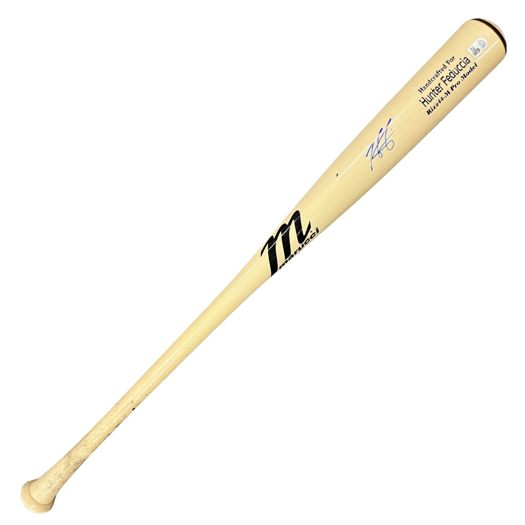 Tampa Bay Rays player Hunter Feduccia team issued autographed broken bat authenticated by Major League Baseball.