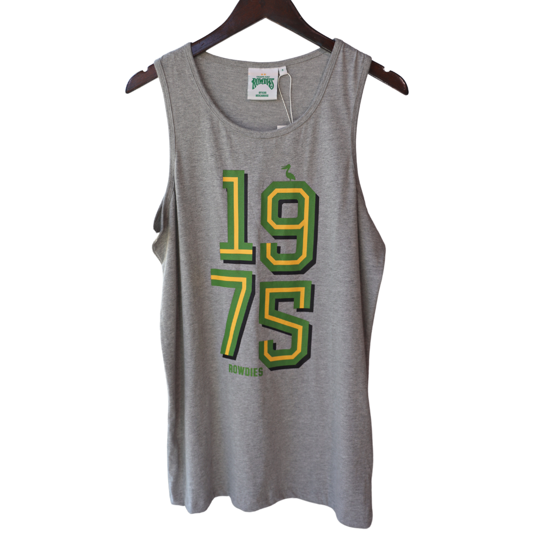 Tampa Bay Rowdies 1975 Grey Tank for Men. This tank by Sport Design Sweden is incredibly soft! Featuring 1975 graphics with a pelican. Perfect tank for sunny Rowdie's Games!