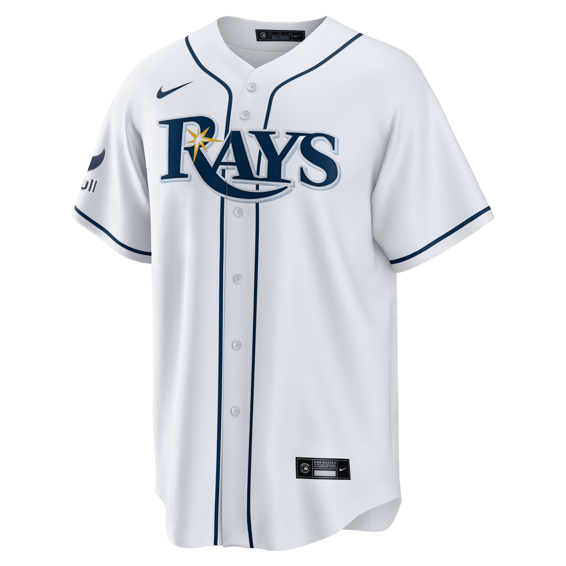 Next time the Rays take the field, show off your favorite team with this MLB Tampa Bay Rays Home jersey from Nike. Delivering a comfortable fit with its polyester mesh, it features team details to add authenticity to your look on game day. The classic full-button design brings the teams official design home, so everyone knows who you are rooting for all summer long. Webull patch included on right sleeve.