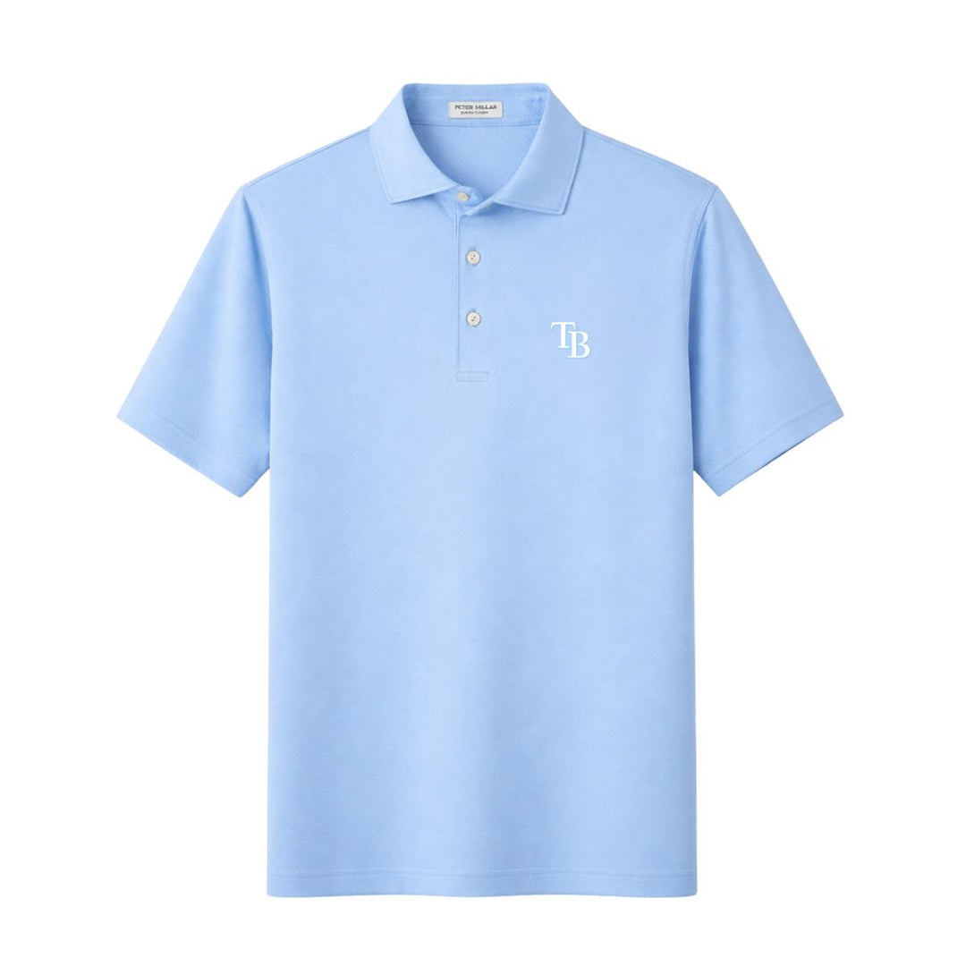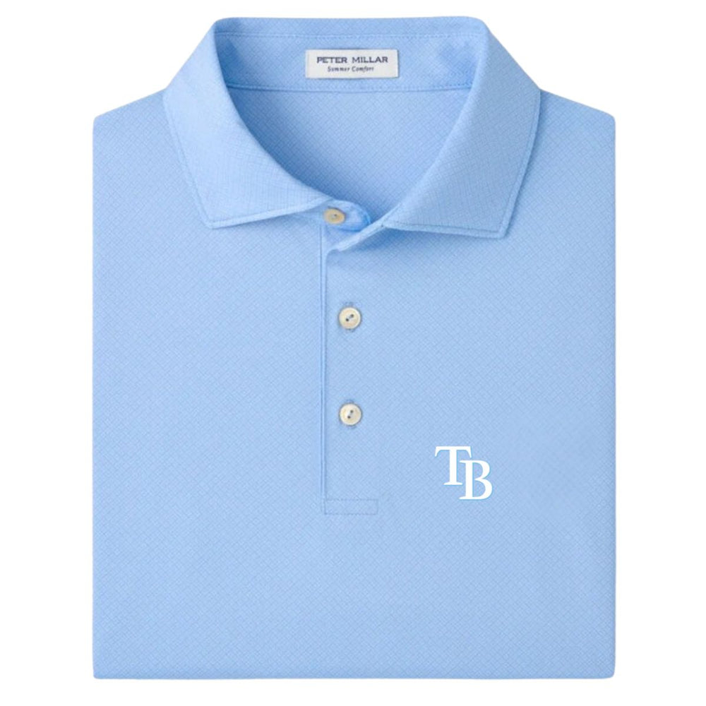 Rays Men's Peter Millar TB Cottage Blue Solid Performance Jersey Polo