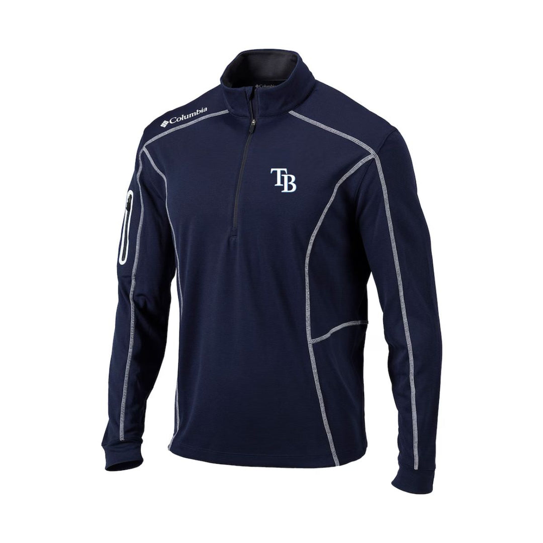 Rays Men's Columbia Omni-Wick Shotgun TB Navy 1/4 Zip Pullover