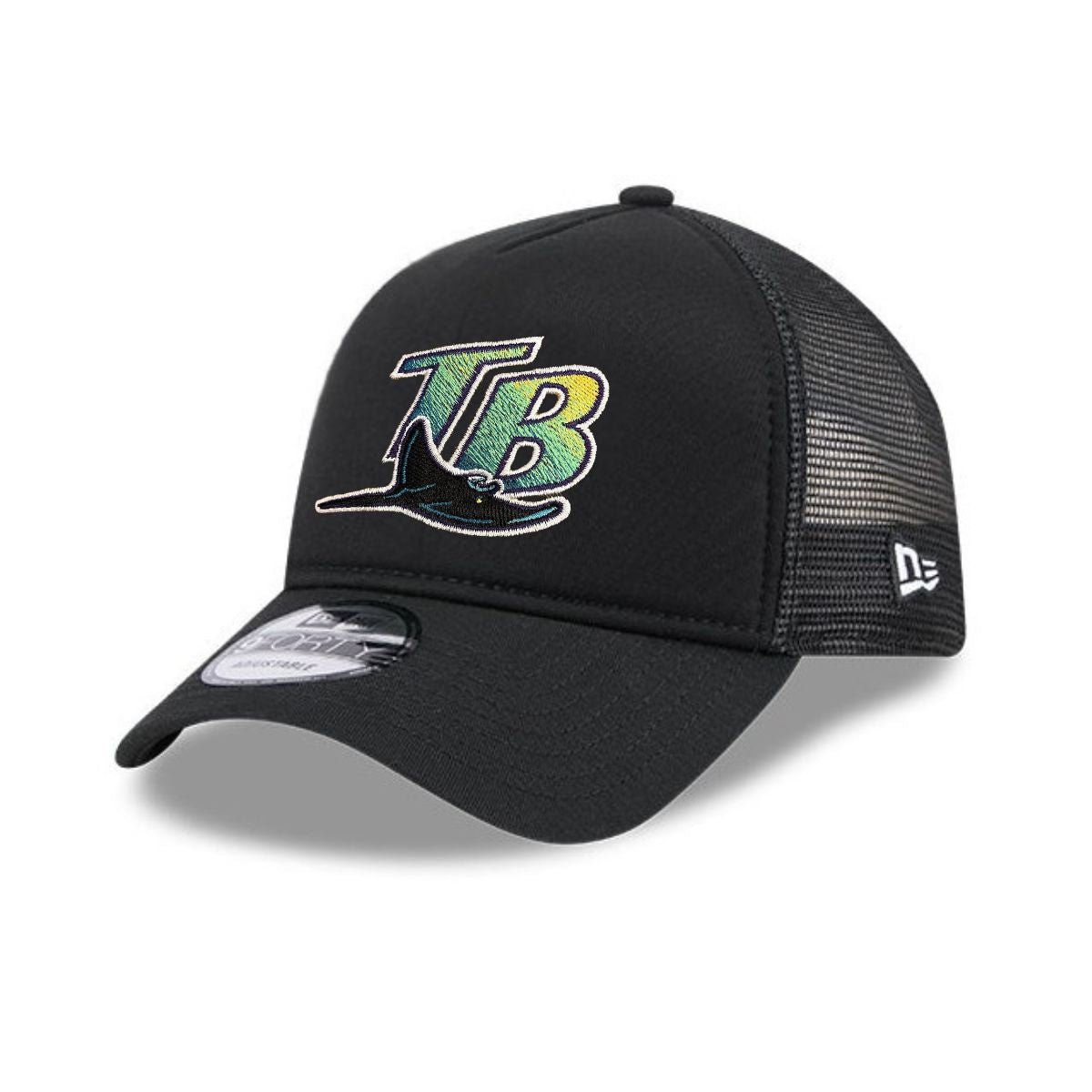 The Rays New Era Black Devil Rays TB Coop AFrame Trucker 9Forty Hat combines classic design with modern comfort. Featuring a structured A-frame silhouette and breathable mesh back panels, it ensures a secure and cool fit. The adjustable snapback closure provides customizable sizing, while the iconic Devil Rays logo adds authentic team spirit. Crafted by New Era, this hat offers premium quality and durability, perfect for dedicated fans who appreciate both style and function.