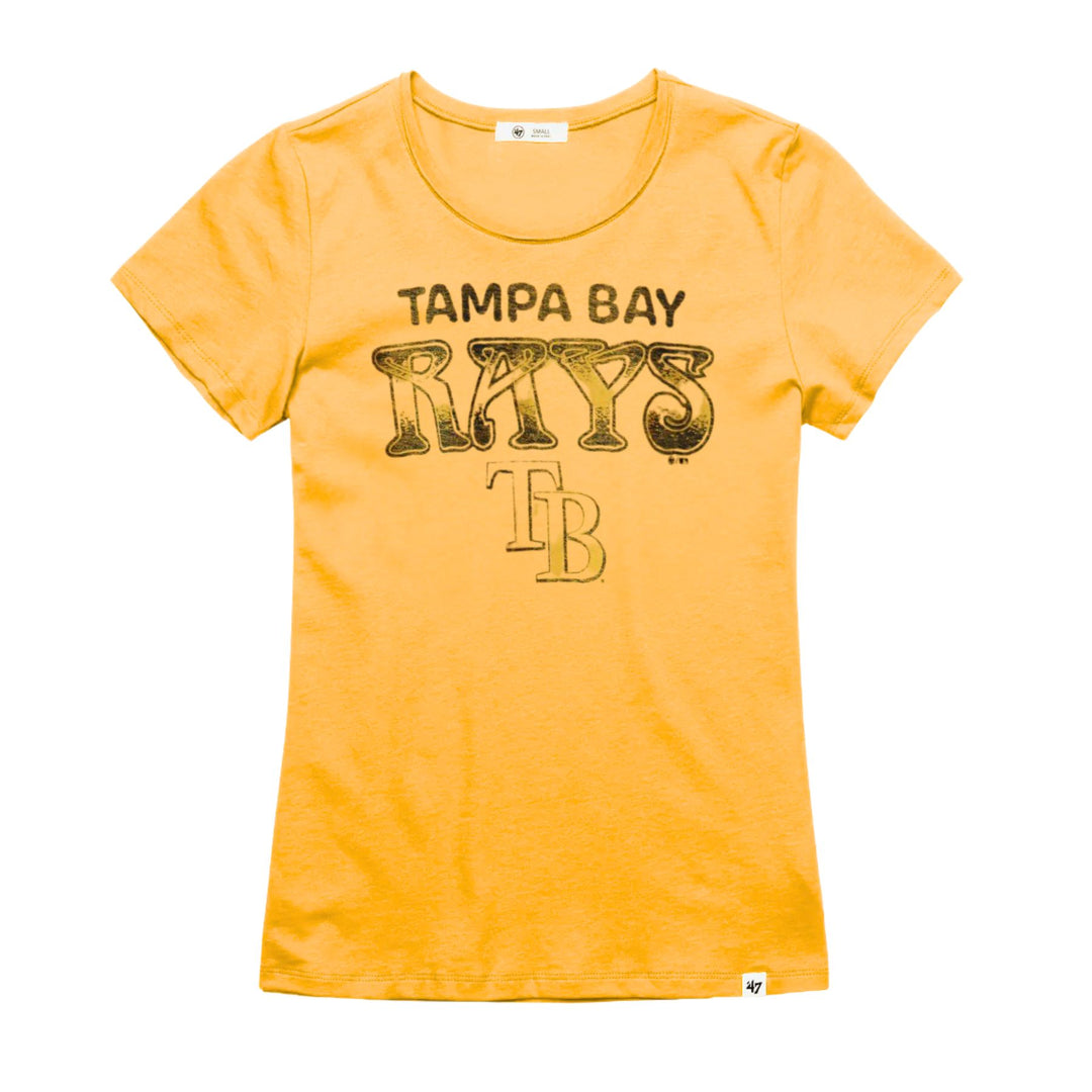 Rays Women's 47 Brand Yellow Distressed TB T-Shirt